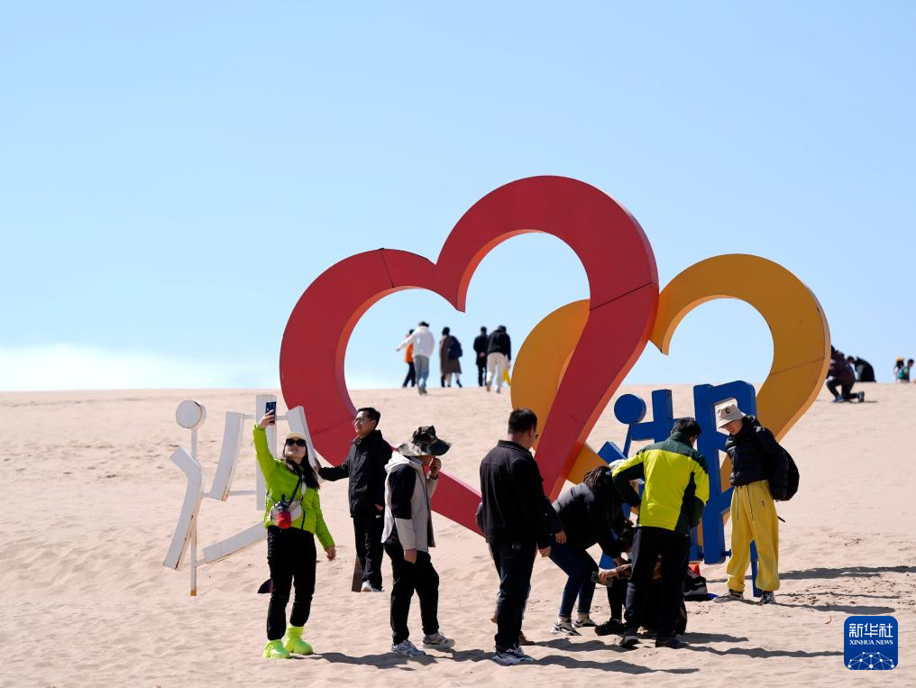 3月29日,游客在沙湖景區沙灘區域游玩。