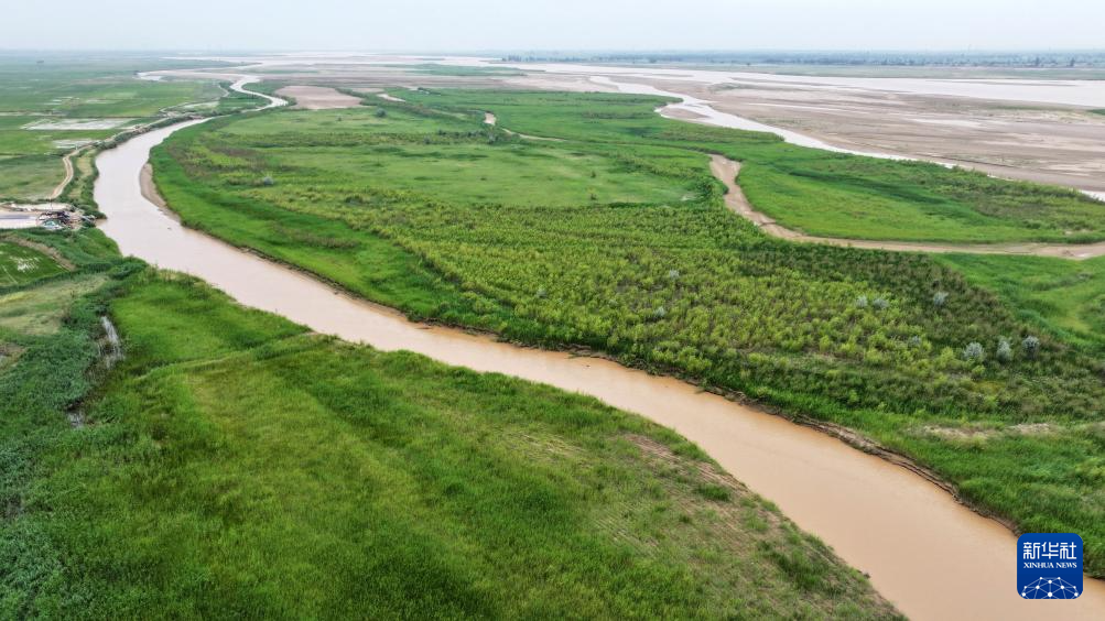 夏日,黃河寧夏段灘涂濕地綠意盎然,生機勃發,盡顯生態之美。新華社記者 王鵬 攝