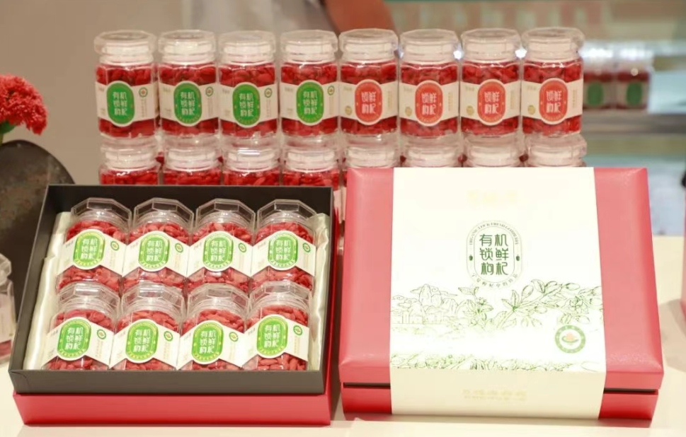 走進閱彩城門店,結合現代活力與傳統韻味,暖木色系的裝修風格傳遞著自然與溫暖,開放式的產品陳列區,從鎖鮮枸杞到枸杞原漿等6大系列80余款產品一目了然。門店還設立“枸杞養生體驗區”,每日提供現泡枸杞茶、枸杞休閑食品試吃,讓顧客在輕松自在的環境中更好地體驗枸杞文化。