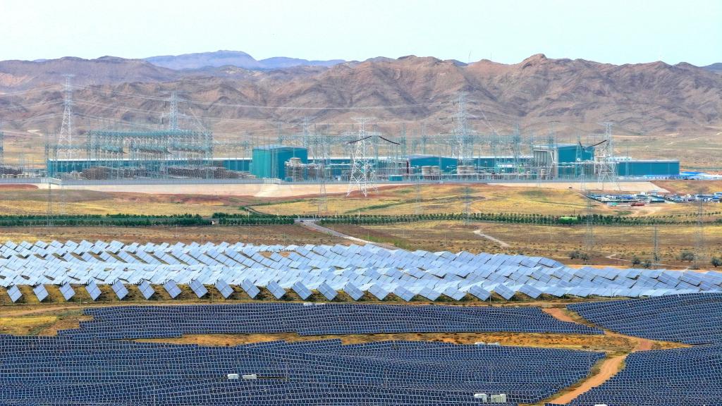 寧夏中衛市中寧換流站及其附近的光伏基地。(受訪者供圖)