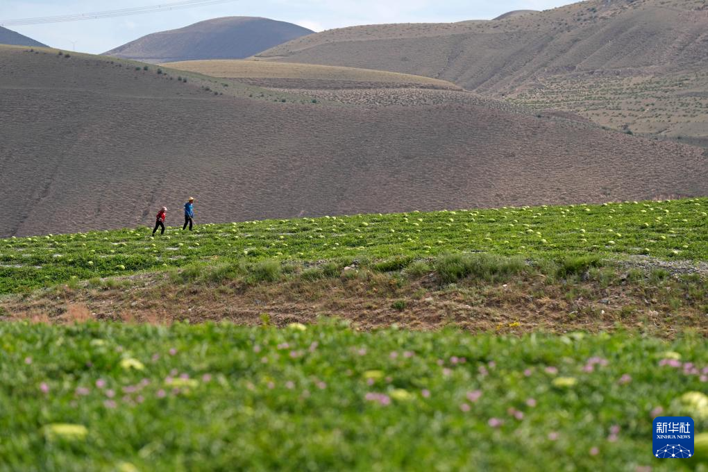 7月20日,農戶在中衛市沙坡頭區香山鄉硒砂瓜田里勞作。