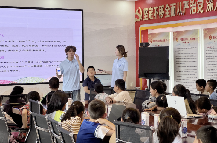 在涇源縣冶家村,團隊成員充分發揮專業優勢,向鄉村兒童介紹了人工智能的基本概念、起源和發展歷程,開啟了孩子們的AI探索之旅。志愿者們大手牽小手帶領孩子實操體驗,在熱情高漲的氛圍中學習科學知識、探索科學奧妙、感悟科學魅力。