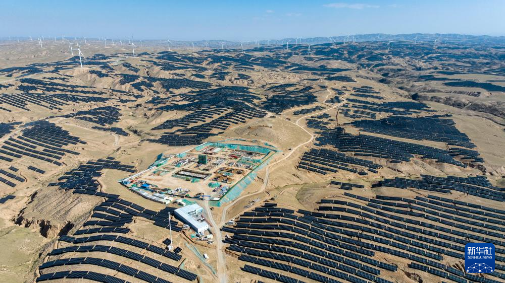 位于寧夏中衛市沙坡頭區的寧夏電投永利(中衛)300萬千瓦光伏綠電項目占地約11.8萬畝,計劃總投資103億元,是寧夏重點大型新能源綠電項目,也是國內在建的最大單體光伏項目之一。該項目配套建設3座330千伏變電站,接入甘塘750千伏變電站,將寧夏地區綠電通過“寧電入湘”通道輸送到湖南。新華社記者 王鵬 攝