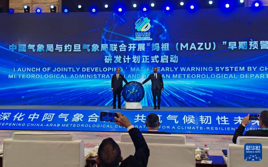 8月28日,中國氣象局與約旦等國家氣象部門聯合開展“媽祖(MAZU)”早期預警系統研發計劃啟動儀式。新華社記者 謝建雯 攝