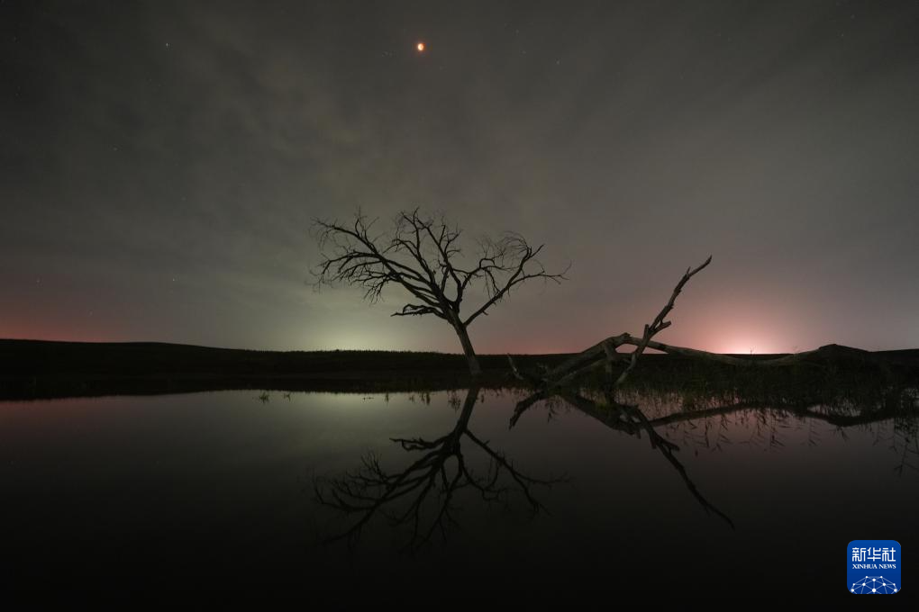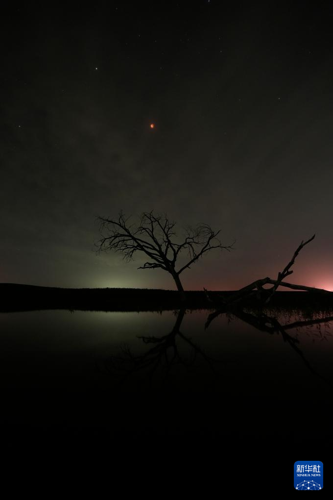 這是9月8日在寧夏吳忠市鹽池縣馮記溝鄉拍攝的月食景象。