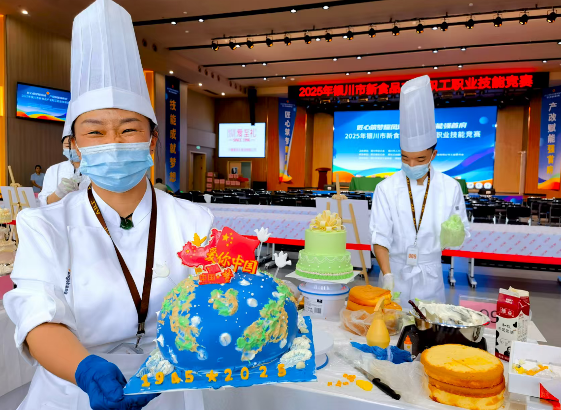 “家國同慶”“風生水起”“乘風破浪”“扭轉乾坤”……9月9日下午,2025年銀川市新食品產業職工職業技能競賽舉辦,來自全市新食品行業的60余名技藝“糕”手,以奶油和水果等為素材,創作出一款款充滿無限創意的主題蛋糕,角逐甜蜜桂冠。