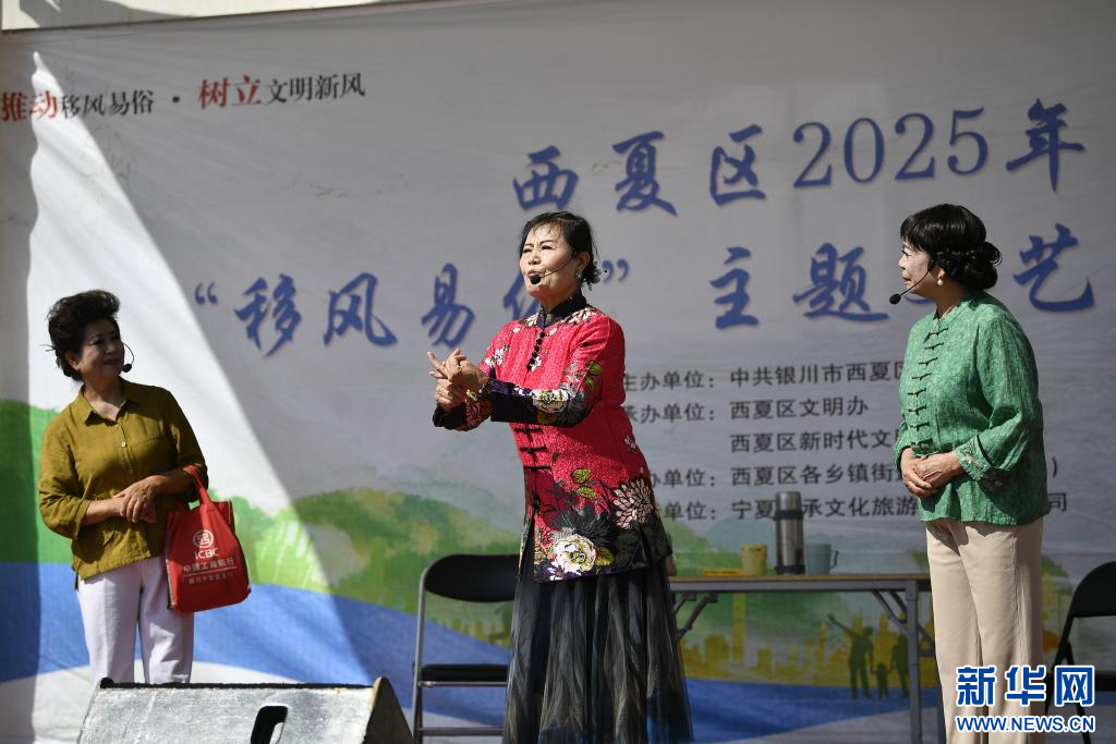 9月10日,寧夏銀川市西夏區2025年移風易俗主題文藝巡演在西夏區朔方路街道同心苑社區舉辦,演員們用歌舞、快板、小品等豐富多彩的形式,為居民獻上一場精彩演出。
