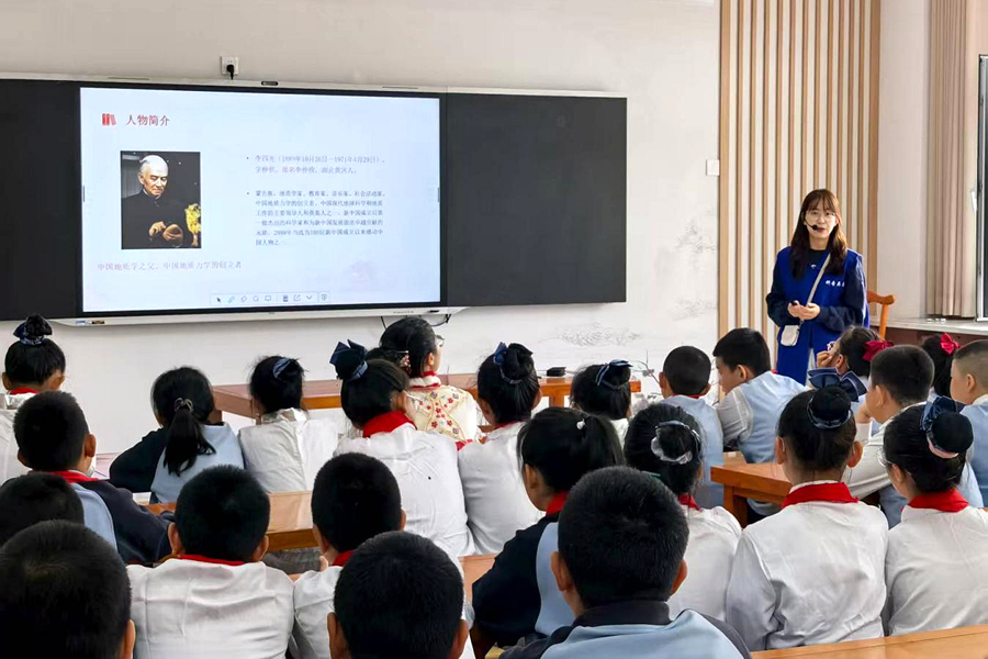 “同學們,這位慈祥的爺爺就是我國著名的中國地質力學的創立者李四光?!痹诤霌P科學家精神講座環節,講解員通過講述科學家們的傳奇故事和偉大成就,生動詮釋了科學家精神的內涵,激發了同學們對科學探索的無限熱情和對科學家們的崇高敬意。末尾還設置了“科學小知識”板塊,讓孩子們明白科學并非遙不可及,而是與日常生活息息相關。