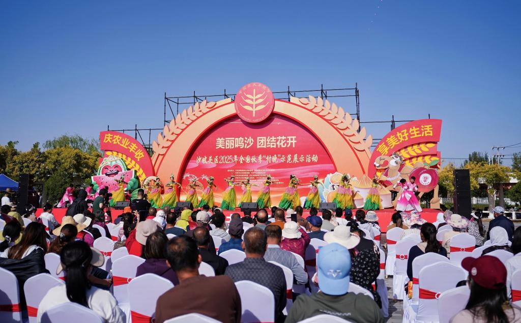 9月23日,“美麗鳴沙 團結花開”沙坡頭區2025年全國秋季“村晚”示范展示活動在寧夏中衛市沙坡頭區迎水橋鎮鳴沙村廣場舉行。此次活動以鑄牢中華民族共同體意識為主線,融合“村晚+豐收節+民族團結”多元主題,通過歌舞、小品、快板等多元藝術形式,精彩呈現了沙坡頭區民族團結、產業興旺、生態優美、文化繁榮的生動畫面。