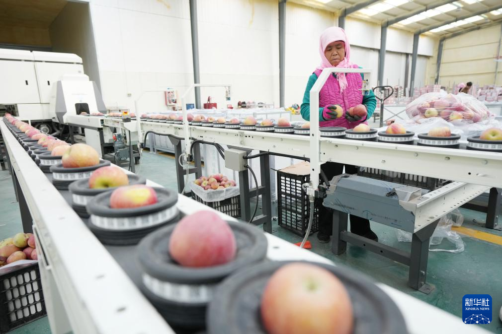 工作人員在中衛市沙坡頭區一家加工企業分揀“旱蘋果”(10月25日攝)。