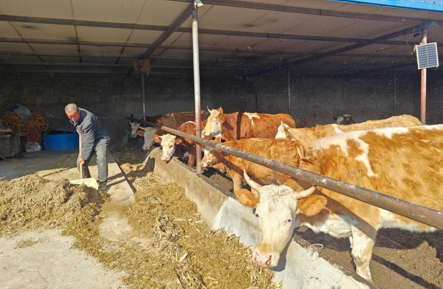 馬明海在給牛喂飼料。(受訪者供圖)