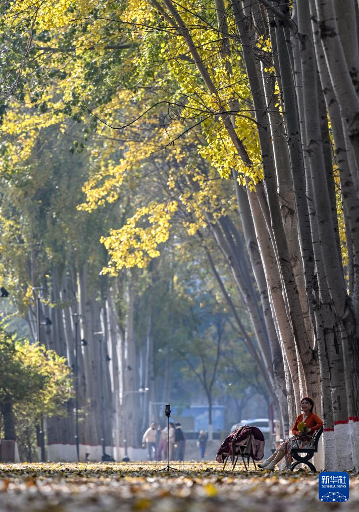 10月28日,市民在銀川市海寶公園休閑、散步。
