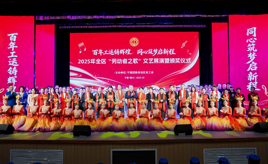 10月31日,銀川市工人文化宮內華燈璀璨,氣氛熱烈,由寧夏總工會主辦的2025年全區“勞動者之歌”文藝展演暨頒獎儀式在此舉行。全區各級勞動模范、獲獎單位代表、演職人員及現場觀眾共400余人齊聚一堂,共同見證了這場屬于勞動者的藝術盛宴與榮耀時刻,用精彩的文藝節目深情禮贊勞動之美,激昂唱響時代強音。
